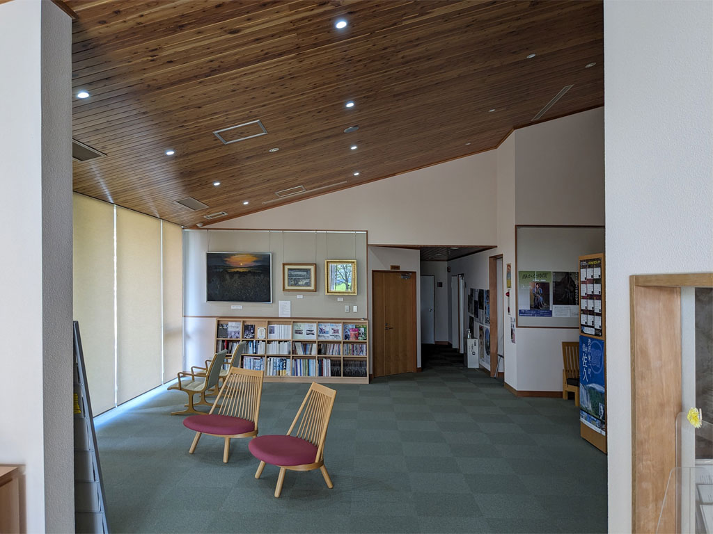 地元産鉄平石張りの外装と、地元産唐松板を多く用いた内装により、自然素材を重視したエコ建築となっています。